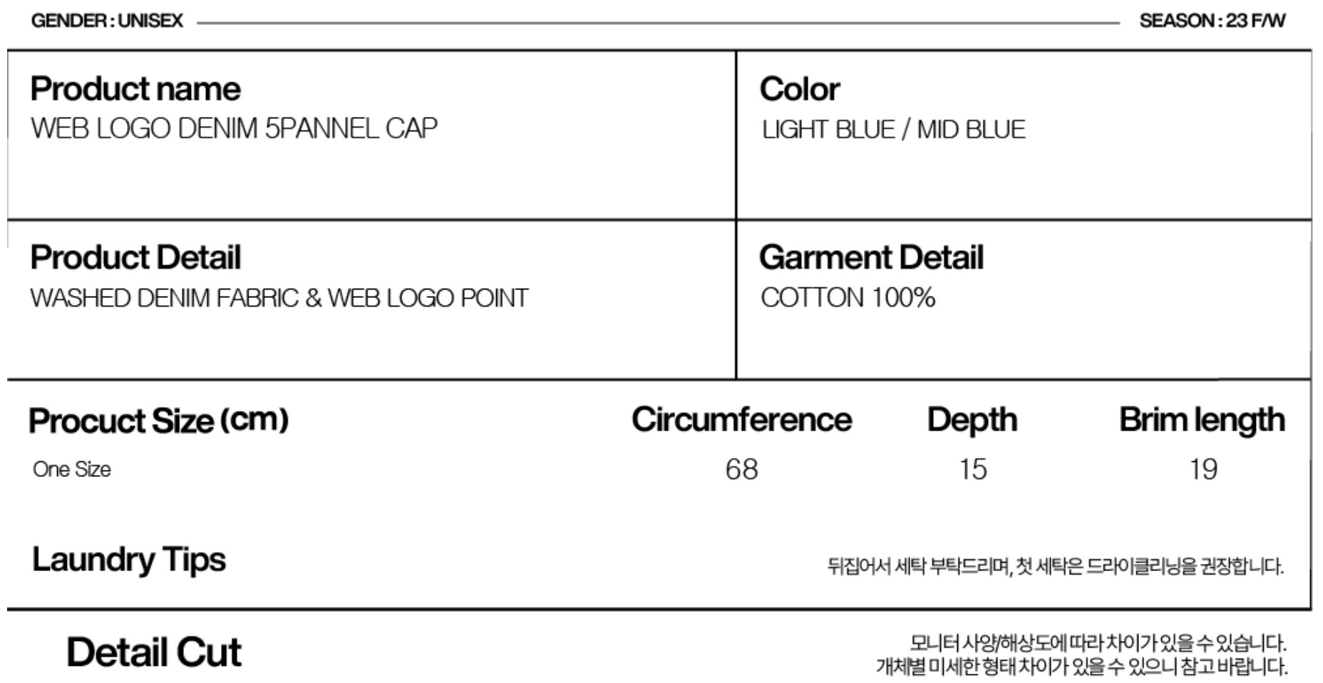 [aeae] WEB LOGO DENIM 5 PANNEL CAP