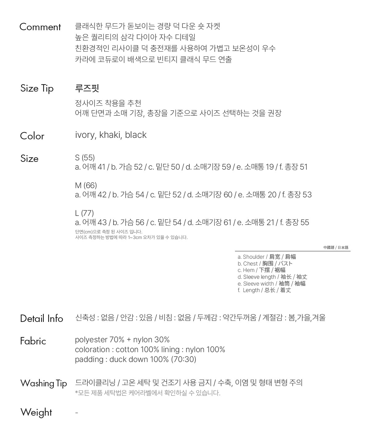 겉감 : 폴리에스터 70% + 나일론30%