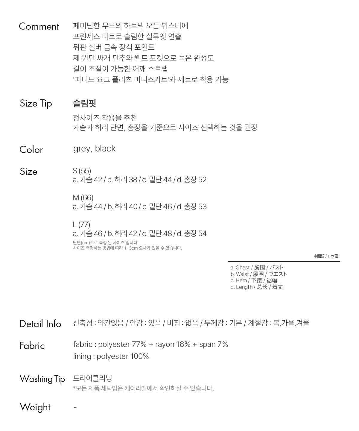 a. 가슴 42 / b. 허리 38 / c. 밑단 44 / d. 총장 52