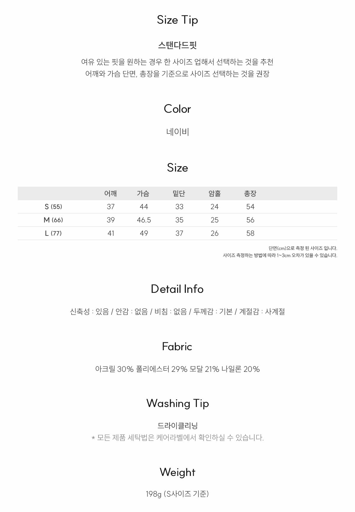 어깨 37 / 가슴 44 / 밑단 33 / 암홀 24 / 총장 54