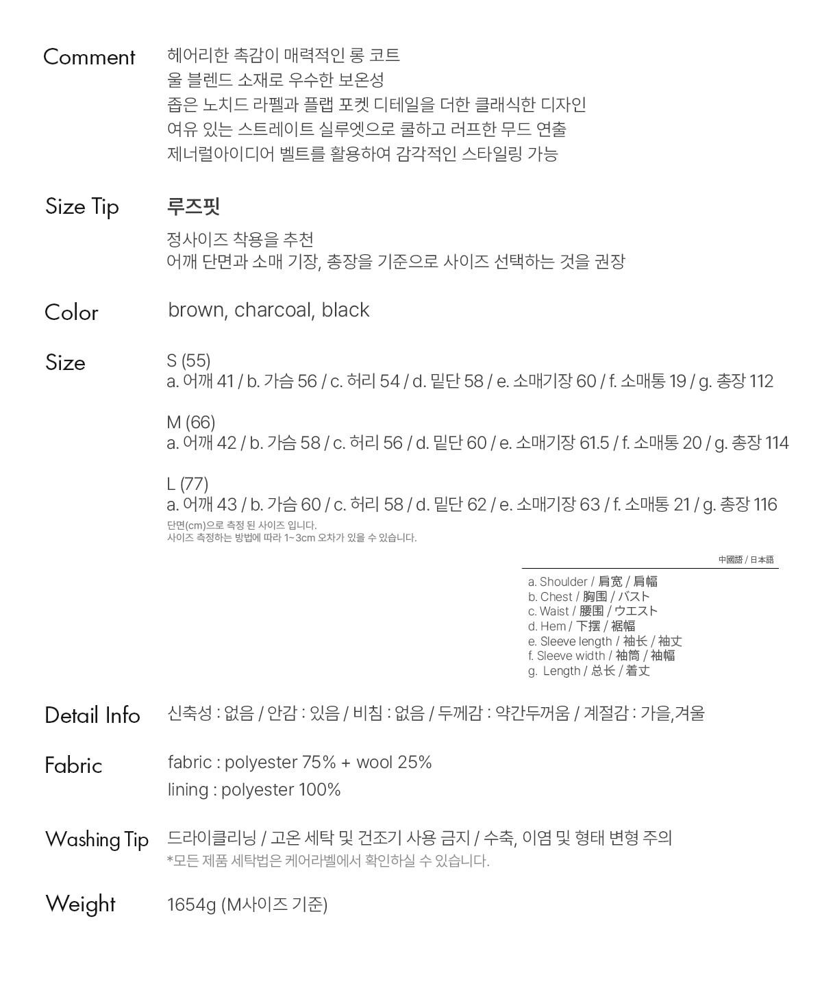 a. 어깨 42 / b. 가슴 58 / c. 허리 56 / d. 밑단 60 / e. 소매기장 61.5 / f. 소매통 20 / g. 총장 114