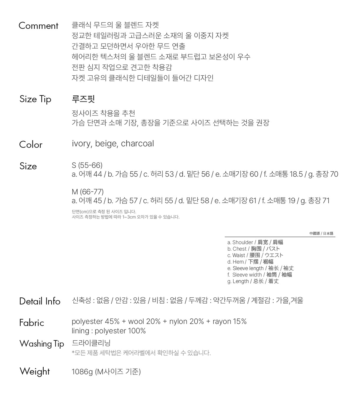 겉감 : 폴리에스터 45% + 울 20% + 나일론 20% + 레이온 15%