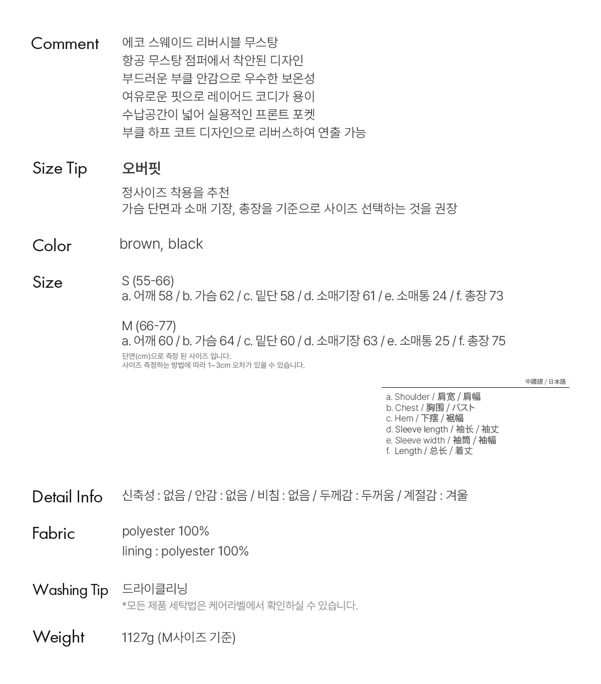 안감 : 폴리에스터 100%