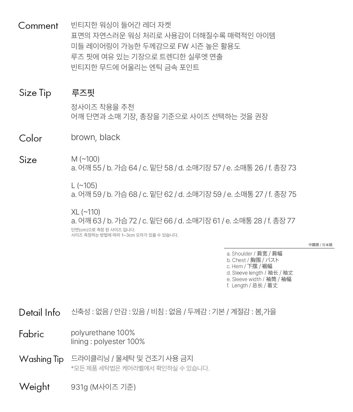 안감 : 폴리에스터 100%