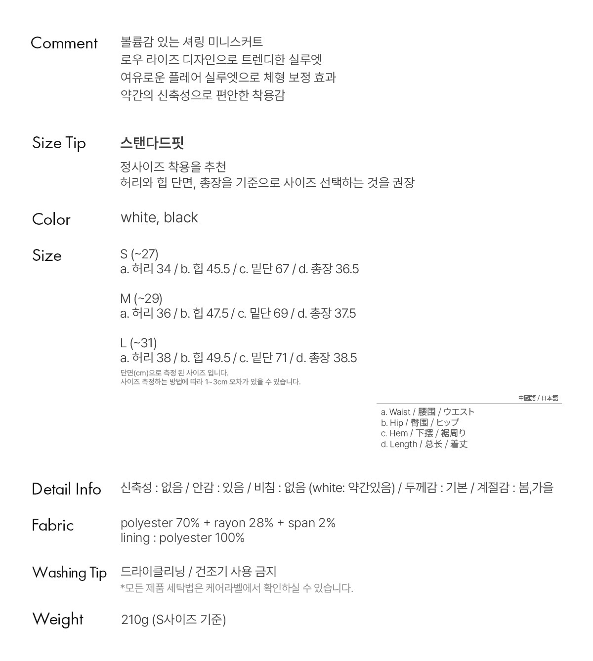 a. 허리 36 / b. 힙 47.5 / c. 밑단 69 / d. 총장 37.5