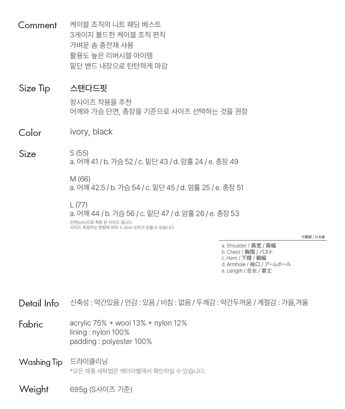 a. 어깨 42.5 / b. 가슴 54 / c. 밑단 45 / d. 암홀 25 / e. 총장 51