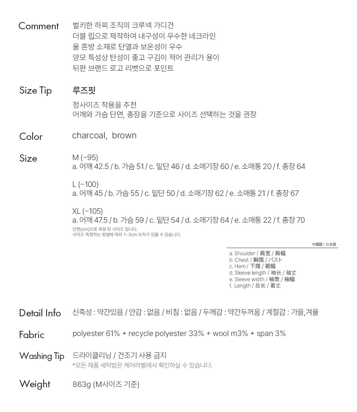 폴리에스터 61% + 리사이클 폴리에스터 33% + 울 3% + 스판 3%